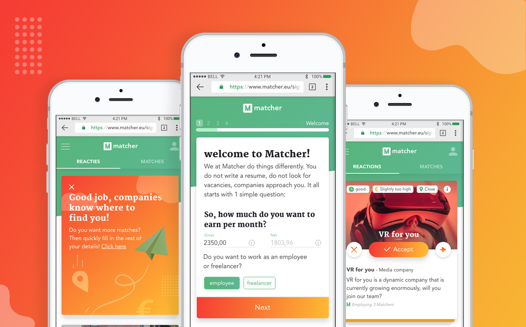 We doen de development en het design volledig inhouse. We kunnen de klant hierdoor goed adviseren en de iteratieve projecten helemaal naar wens invullen. Daarnaast verhoogt het onze flexibiliteit en snelheid.