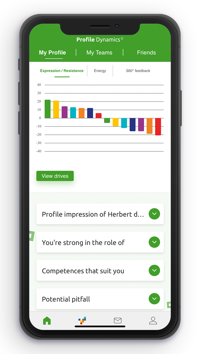 Profile Dynamics has developed a test that analyses people’s professional and personal motives. To employ these motives in professional development, Profile dynamcs partnered with Mindgame in order to develop the Profile Dynamics app.