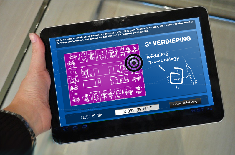 Als oplossing hebben we de Tablet Game ontworpen. Een interactie waarbij spelers via een game gespeeld op de tablet wegwijs worden binnen een bedrijf. Bij deze interactie konden spelers ook tegen elkaar spelen.